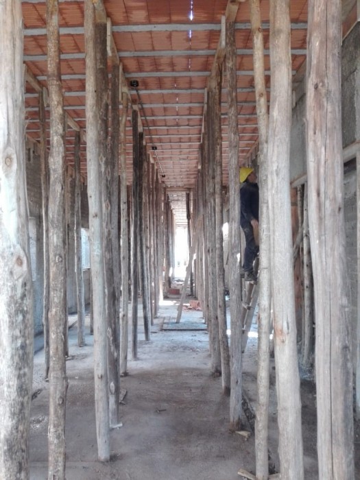En ambas obras, las contratistas continúan con la ejecución de las respectivas mamposterías a la altura de dintel. Además, continúan los montajes de las cubiertas de techo. Y en el caso de la Fuerza Aérea se están ejecutando también revoques internos y externos, y contrapisos.