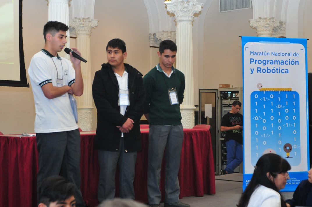 Luego de dos instancias virtuales y una final presencial desarrollada ayer en el Salón blanco del Palacio Sarmiento, sede del Ministerio de Educación, Cultura, Ciencia y Tecnología de Nación, en la Ciudad de Buenos Aires, los alumnos Nicolás Vale, Exequiel González y Omar Ontiveros, acompañados por el profesor Gabriel Salomón, lograron el segundo puesto a nivel nacional.
