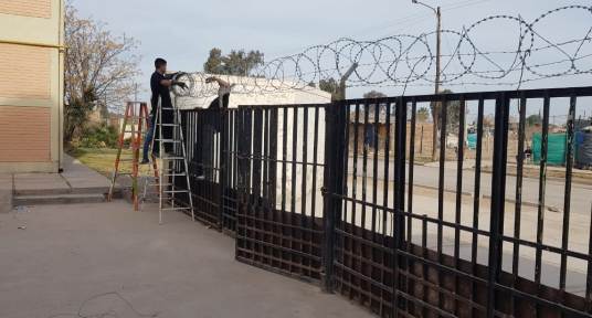 Se colocó malla antivandalica en el frente y ventanas del edificio, tela perimetral sobre jardín, también se colocó concertina en portón de ingreso. Además se soldaron barrales y se repararon las rejas ya que se encontraban en mal estado. Los directivos del establecimiento quedaron muy agradecidos con el trabajo realizado por esta coordinación.