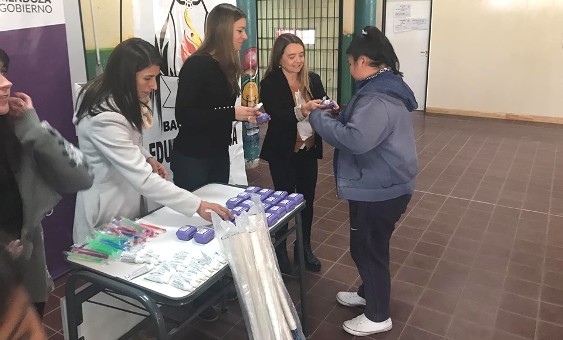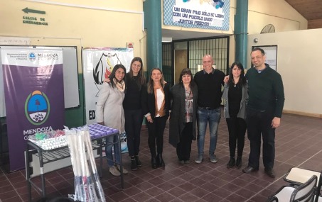 Luego de una charla, se entregaron los protectores bucales a todos los estudiantes y la escuela recibió palos de hockey y bochas para realizar este deporte con las medidas de protección correspondientes.