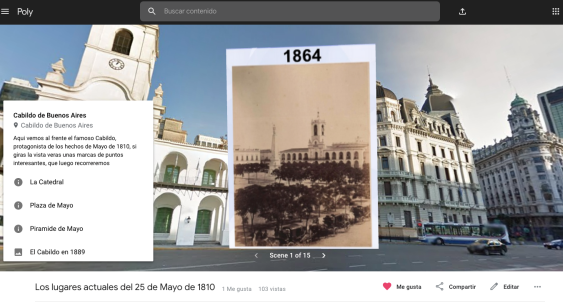 También se realizó un paseo con fotos de 360º de cómo son actualmente los lugares actuales de la Revolución de Mayo, como el Cabildo, la plaza de Mayo, la catedral, jabonería de Vieytes, Casa de Rodriguez Peña, la Manzana de las Luces, el Café de Alsina y Bolívar y se adiciona la actual Casa Rosada, Realizado por Alejandro Rodriguez.
