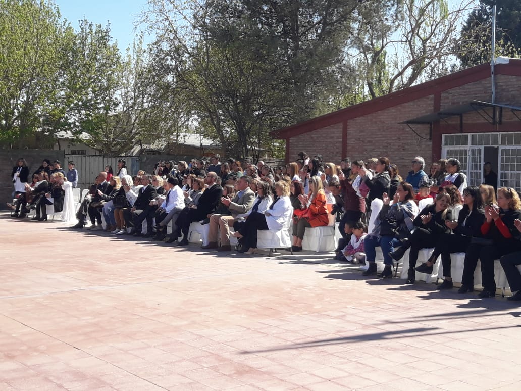 Administrativo de la Dirección General de Escuelas, Marcelo Cunqueiro; supervisoras técnicas Seccionales; miembros de Consejo Directivo de la Sección 55; directivos de la escuelas que integran la red de aprendizaje institucional; autoridades departamentales y la comunidad educativa, quienes disfrutaron de la interpretación artística de la Banda de Música de la Policía de Mendoza Zona Sur “Felipe Rodríguez Servin”, dirigida por el Oficial Inspector José Luis Espejo.
