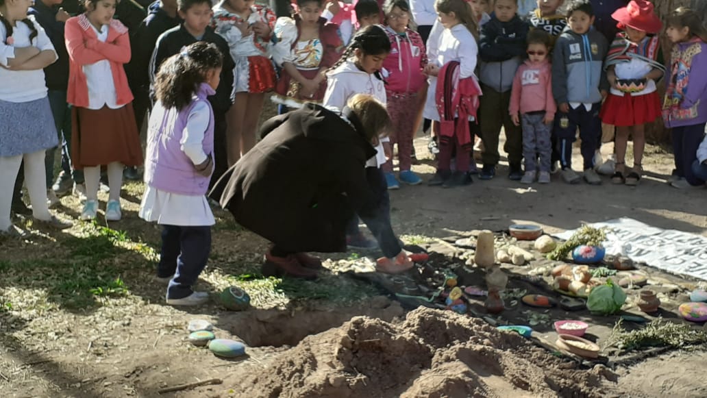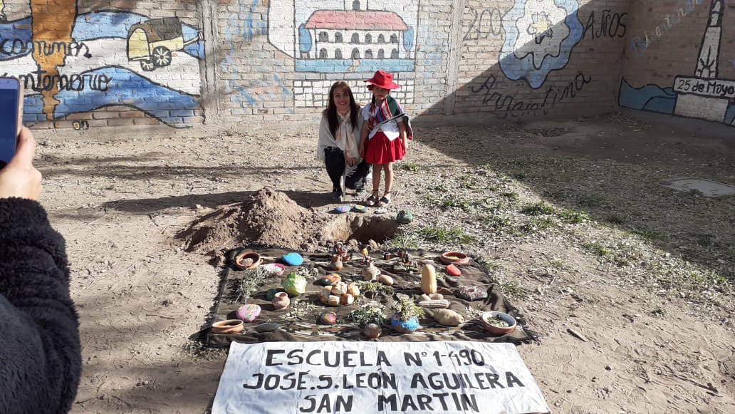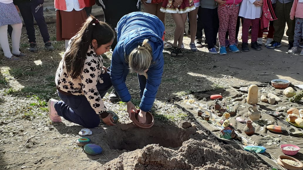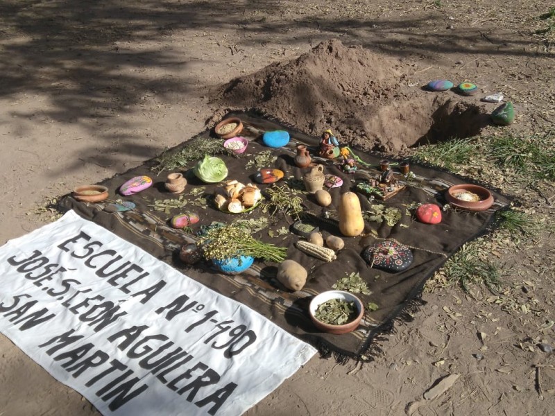 La escuela N° 1-490 “José León Aguilera”, situada en Las Chimbas, San Martín celebró junto a familias, docentes y alumnos la ofrenda a la Pachamama.
