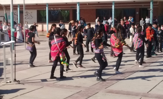 La banda de la Policía de Mendoza entonó las canciones patrias, y alumnos de jornada extendida actuaron y danzaron coreografías respetando la interculturalidad.