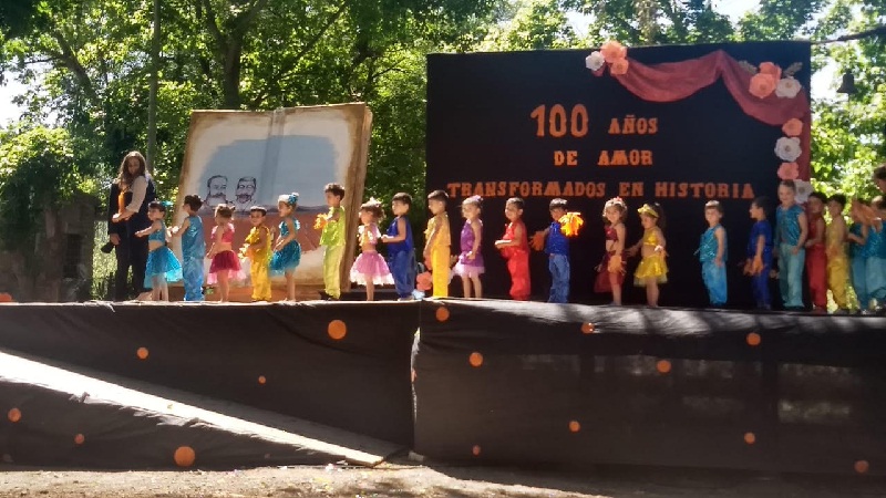 Este viernes la escuela 1-202 Martín Zapata, de San Rafael, festejó los 100 años de su creación con un emotivo acto y con el lema “100 años de amor transformados en Historia”, en el que participó gran parte de la comunidad educativa, tanto en los números artísticos, como en el montaje del escenario y la escenografía de la celebración, con la colaboración de la Escuela Artística Vocacional 5-027 Roberto Rosato Carrozo, que funciona en el mismo edificio durante la tarde, y tiene alumnos y egresados en común con la escuela centenaria.
