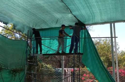 Esta vez la cuadrilla de metalúrgicos se presentó en el establecimiento para realizar el re-acondicionamiento de estructura metálica y poder colocar tela media sombra sobre el patio del establecimiento.
