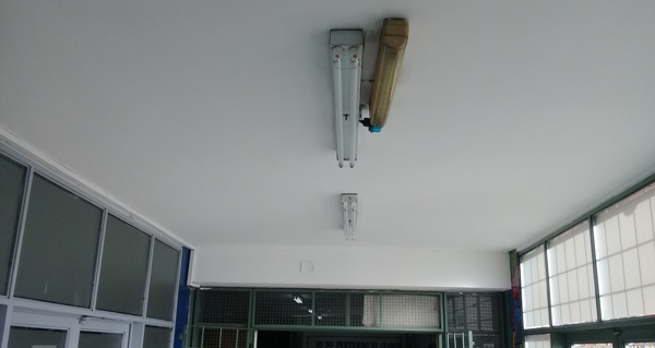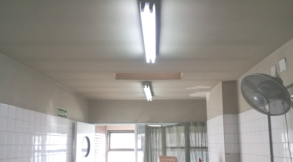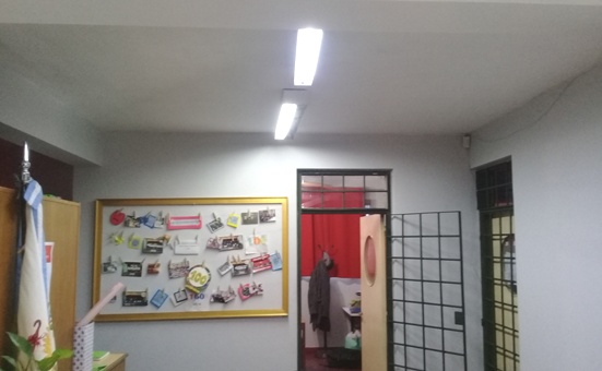 En esta ocasión se realizaron trabajos de electricidad, que implicó la reparación y modificación de luminaria analógica a led en la planta alta del edificio. También se colocaron luminarias de led en la cocina, lavandería, secretaría y en los pasillos de planta baja.