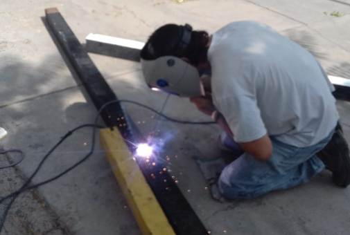 Personal idóneo en metalurgica de la Coordinación de Servicios Generales, asistió a la escuela Nº 2-002 «Pedro Nolasco Ferreyra» de Capital, para comenzar con el armado de la estructura para el toldo de media sombra.