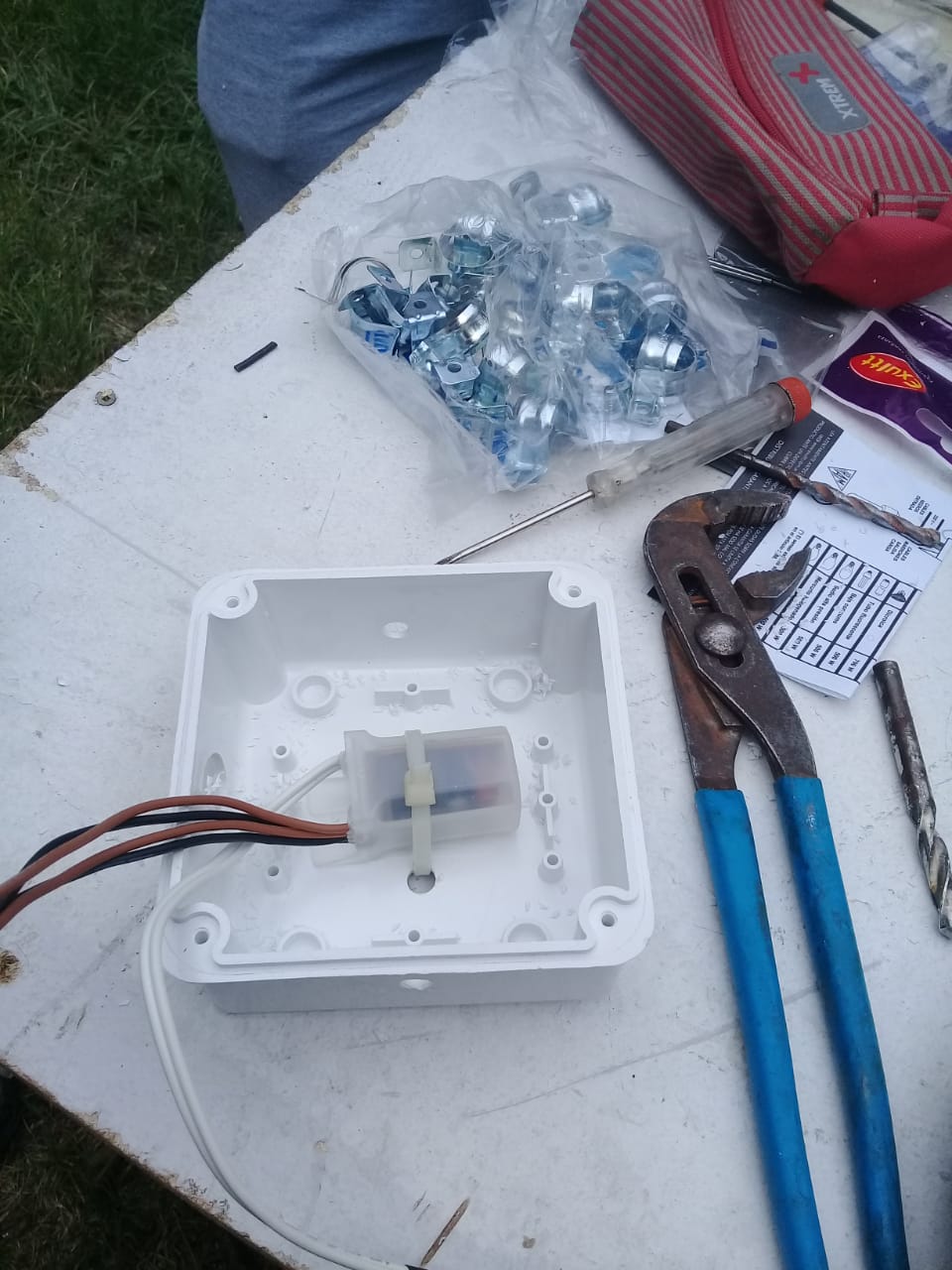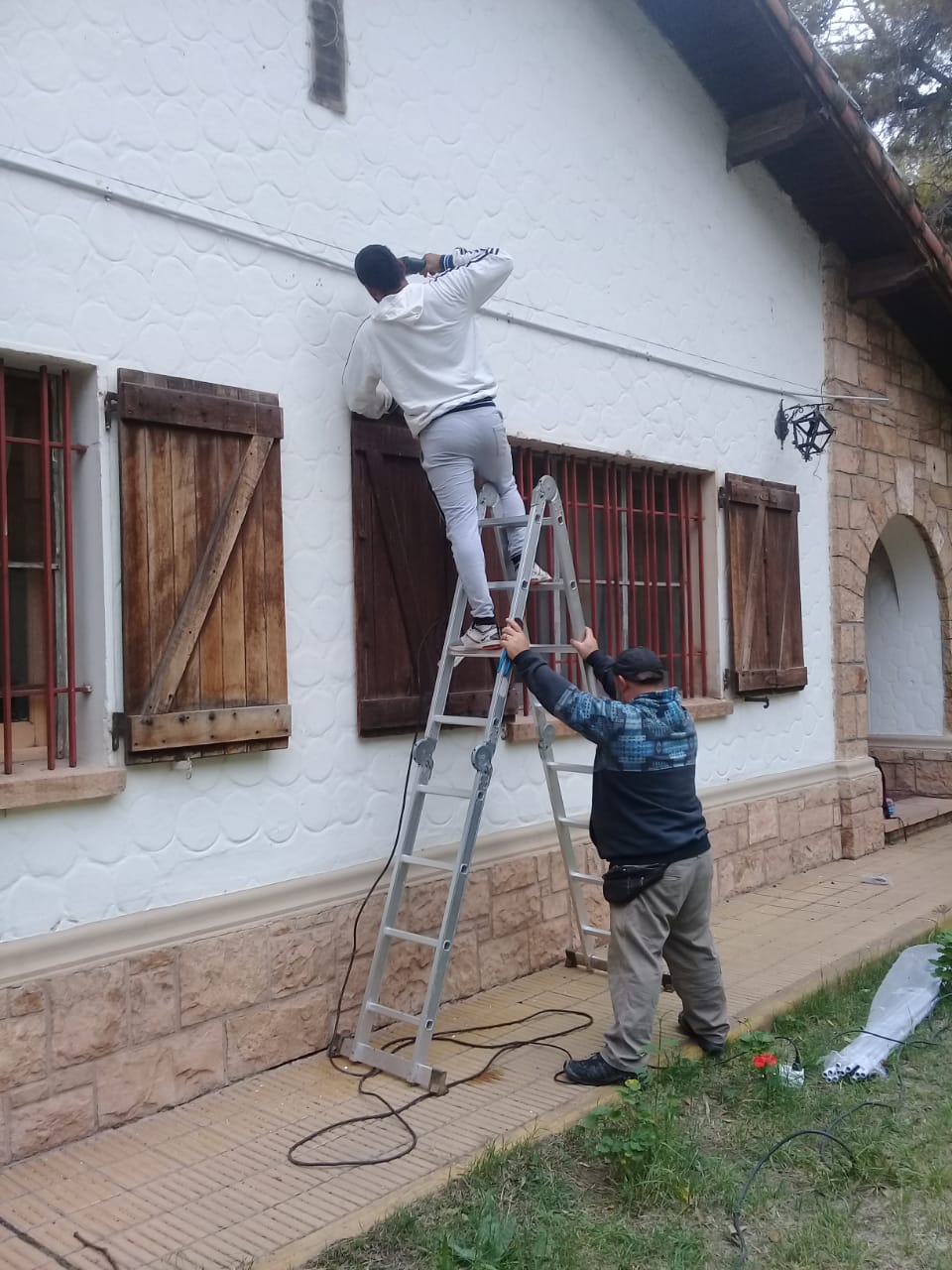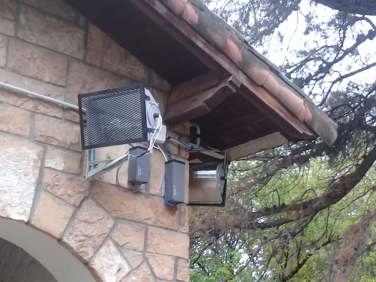 . Mejora del sistema de alumbrado exterior del establecimiento, realizando cableado nuevo con tubos rígidos y engrapados para la colocación de reflectores alógenos. Estos mismos, fueron protegidos con rejillas antibandálicas con soporte metálico para cada reflector, las cuales fueron fabricadas por el Taller de la Coordinación.