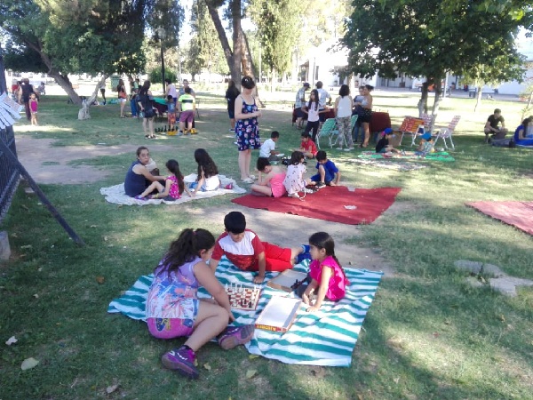 A los alumnos convocados se fueron sumando muchísimos jóvenes y adultos de San Martín, asiduos concurrentes al espacio verde que se encontraban con la iniciativa.