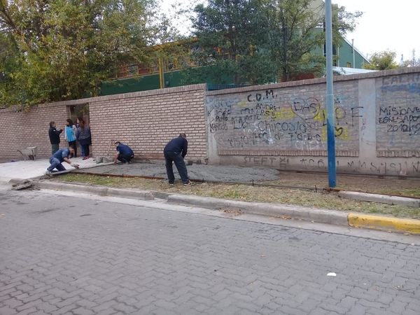 La Coordinación de Servicios Generales, se encuentra trabajando para reparar en su totalidad la vereda del Jardin 0-152, ubicado en la zona de Benegas del departamento de Godoy Cruz. En la actualidad se esta realizando la primera etapa de albañelería de 45 metros de largo por 2 metros de ancho.